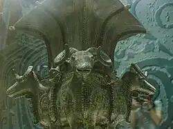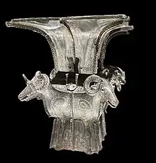 The Four-goat Square Zun (Chinese: 四羊方尊; pinyin: Sì Yáng Fāng Zūn) is an ancient Chinese ritual bronze zun vessel. It is more than 3,000 years old from the era of late Shang dynasty (11th – 10th century BC), and famous for its shape, each of the four sides of the belly has a big horn-curled goat. It was unearthed in Huangcai Town, Ningxiang County in Hunan Province, and is exhibited at the National Museum of China.[1][2]