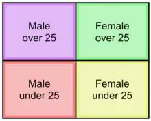 In the Hollywood movie industry, a four-quadrant movie is one which appeals to all four major demographic "quadrants" of the movie-going audience: both male and female, and both over and under 25 years of age.[1]