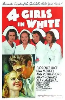 Four Girls in White is a 1939 drama film directed by S. Sylvan Simon, starring Florence Rice and Una Merkel. It follows the mostly comical exploits of four nursing students enrolled in a three-year training course.[1]