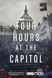 Four Hours at the Capitol is an HBO original documentary film produced in association with the BBC and directed by Jamie Roberts. It was released on October 20, 2021. The film chronicles the 2021 United States Capitol attack and focuses on the hours of 1-5 p.m. through an assortment of footage from that day, some previously unseen, in addition to testimonies from some rioters, law enforcement officers, Members of Congress and staffers who were inside the Capitol Complex.[1][2][3]