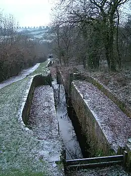 Lock 11, February 2005. The upper part of this lock was made wider, to allow boats to pass.[1]