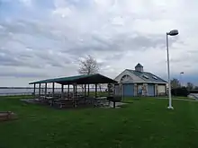 In addition to the vistas, visitors to the park have access to extensive picnic facilities, volleyball courts, horseshoe pits, and a playground.[7] Fox Point State Park is the northern terminus of the Coastal Heritage Greenway, which stretches from Wilmington south along the shore of Delaware Bay to Cape Henlopen State Park. It is also the eastern terminus of the Northern Delaware Greenway.