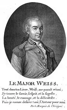 François-Rodolphe de Weiss (von Weiss, also von Weiß, surname at birth Wyss) (1751–1818) was a Swiss military officer, diplomat, writer, philosopher, and a follower of Jean-Jacques Rousseau.