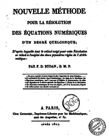 Ferdinand François Désiré Budan de Boislaurent (28 September 1761 – 6 October 1840) was a French amateur mathematician, best known for a tract, Nouvelle méthode pour la résolution des équations numériques, first published in Paris in 1807, but based on work from 1803.