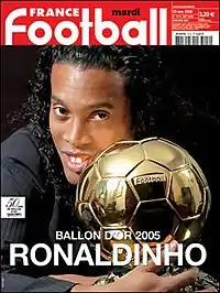 ![]() A 2005 issue featuring Ronaldinho and the Ballon d'Or trophy | |