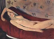 In the following years, Menzio's work developed a personal expression; some examples are "Interno" ("Interior"), now at the Galleria d'Arte Moderna di Torino and "Cappello blu", exhibited at the Royal Palace in Milan in 1929, works that showed soft brush strokes and "forms that vanished in the light". Other works such as "Nudo Rosa" or "Figura (con cappello)" (1929; now in private collections, Turin) or "Corridore podista" (1930) show the influence of Henri Matisse and Amedeo Modigliani. Between 1930 and 1931 Menzio continued his personal investigation, marked by experimentalism and restlessness, elements that were present in some paintings such as "Natura morta con ciliegie" (1931; in the Galleria d'Arte Moderna della cittá di Torino), where the rigorous and essential composition is substituted by objects that had restless and defined colors and outlines. Between 1934 and 1935 he created the frescos in the Psychiatric Hospital of Collegno and inside the Church.