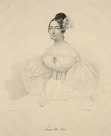 Francilla Pixis (15 May 1816 – ?1888) was a German mezzo-soprano. She was born Franziska Helma Göhringer in Lichtenthal near Baden-Baden. She was initially trained by the pianist and composer Johann Peter Pixis who adopted her when she was 15 but also studied with Henriette Sontag and Ferdinando Paer. She made her concert debut in London in 1833 and her operatic debut in 1834 in Karlsruhe. She subsequently sang in Vienna, Paris, London, and Italy both on the opera stage and in successful concert tours with her adoptive father. In Italy she made her La Scala debut in 1838 in the title role of Rossini's La Cenerentola and also sang at the Teatro San Carlo in Naples and the Teatro Massimo in Palermo. In 1840 she created the title role in Giovanni Pacini's Saffo, which he wrote expressly for her voice. Pixis married a Sicilian nobleman, Giovanni di Sant'Onofrio del Castillo, in 1843 and retired from the stage three years later. Their son, Ugo di Sant'Onofrio del Castillo, served in the Italian Parliament, first in the Chamber of Deputies from 1888 until 1913 and later in the Senate.[1][2][3]