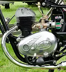 Continuing with cost factors and simplicity in mind the new wheels of the new Francis Barnet were on spindles and easily removed. The 147cc Villiers two-stroke engine with flywheel magneto was light with a two speed Albion gearbox, a three speed was an option, and very easily reassembled and at a very low cost. The construction came with a no breakage forever guarantee. Other 250cc and 350cc machines were also produced with a sidecars as an option. The Pullman model followed in 1928 with a 344cc vertical in-line two-stroke Villiers engine. From 1928 to 1930 the black motorcycles followed the fashion and were coloured cream. They reverted to black in 1931 and to Arden Green around 1947.[16]