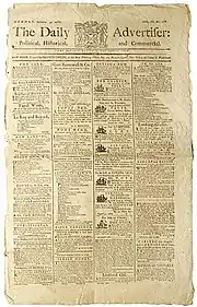 - The Daily Advertiser. Indiana University: Indiana University Library Catalog. 1787. Retrieved March 8, 2022.