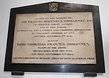 - Francis Ommanney, who married Julia Henrietta, daughter of Thomas Metcalfe, of Fitzroy Square, and was father of Montagu Ommanney, head of the Colonial Office from 1900 to 1907.[7][8]