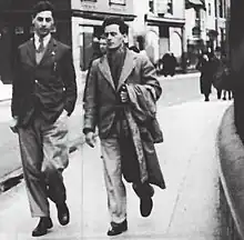 ![]() Francis Skinner (left) and Ludwig Wittgenstein (right) walking with one another in Cambridge | |