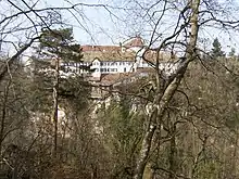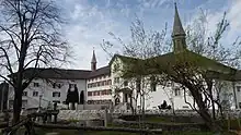 The convent of the Sisters of the Precious Blood in Schellenberg with the residence and office of the archbishop of Vaduz (left).