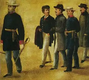 Carlos Soublette, Pedro Briceño Méndez, Francisco Antonio Zea, Gregor MacGregor and Luis Brión in Ocumare. 19th century illustration by Carmelo Fernández.
