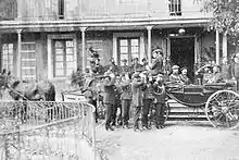 Melgar's position started to change in 1894; he found himself in acute personal conflict with the newly wed second wife of Carlos VII, Berthe de Rohan.[98] Relations between the king and his secretary worsened in unclear circumstances during Carlist military buildup of 1898–1900.[99] Though Melgar was probably aware of belligerent preparations taking place beyond party structures[100] he did not push for insurgency.[101] Its uncontrolled outbreak in October 1900 caught Carlist leaders by surprise. The claimant, outraged and suspicious, decided to purge the party executive, with both Cerralbo and Melgar falling victims.[102] According to himself, he was sacked as a result of joint intrigue of general Moore and Berthe de Rohan.[103] Some scholars suggest that Carlos VII considered him traitor,[104] but Melgar underlined cordial farewell he received in November 1900.[105]