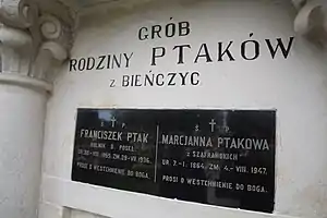 Franciszek and Marcjanna (née Szafrańska) Ptak had twelve children: five sons and seven daughters. Among their grandchildren were Włodzimierz Ptak, an immunologist,[12] and Wiesław Ptak, a chemist.