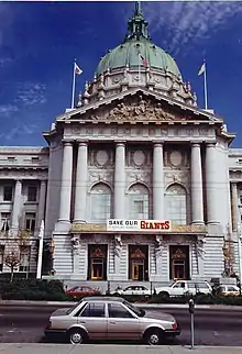 Jordan succeeded Art Agnos as the Mayor of San Francisco from 1992, until 1996.[6] Jordan continued Agnos' campaign against the city's chapter of Food Not Bombs and introduced a controversial program called Matrix which aimed to deal with the city's homelessness problems.[7] During his mayoral tenure Jordan played a role in converting the Presidio Army Base into part of the Golden Gate National Recreation Area, bringing Bay Area Rapid Transit to the San Francisco International Airport, keeping the San Francisco Giants[8] in the city and balancing the city's budget.[9]