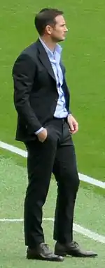 Frank James Lampard OBE (born 20 June 1978) is an English professional football manager and former player who was most recently caretaker manager of Premier League club Chelsea. He is widely regarded as one of Chelsea's greatest players ever, and one of the greatest midfielders of his generation. He has the record of the most goals by a midfielder in the Premier League and of scoring the most goals from outside the box (41).[4][5][6] He ranked highly on a number of statistics for Premier League players for the ten years from 1 December 2000, including most games and most wins.[7][8]