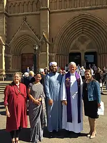 ![]() Nelson (second from right) after a multi-faith service at St Peter's Cathedral, Adelaide (2021) | |