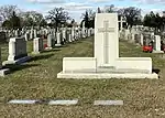 Frank Nitti died on March 19, 1943, at the age of 57.[17] Nitti is buried at Mount Carmel Cemetery in Hillside, Illinois. Controversy has persisted regarding the interment of a suicide in a Catholic cemetery. Nitti's grave can be found to the left of the main Roosevelt Road entrance, about 50 feet (15 m) from the gate. To the right of the gate is the family plot containing the grave of Al Capone, marked by a 6-foot (180 cm) white monument stone. Straight up from the gate are the graves of Dean O'Banion and Hymie Weiss, both North Side Gang members who the Chicago Outfit killed under Capone.