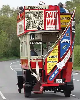 Rumours reached the LGOCs board that Searle had been offered a senior position with the Daimler Company's planned new motor-omnibus business. Searle's salary was increased from £1,000 to £1,250 on condition that he devote all his time to LGOC and took no outside employment. He prevaricated. Searle was ordered to appear before the board at their meeting on 4 May 1911. Offered a salary of £2,000 provided he signed a new contract there and then, Searle refused and was dismissed with three months' salary in lieu of notice.[8] The details of his new position with Daimler's The Premier Motor Omnibus Company were announced in The Times on 6 May 1911.[11][note 1] This company, ultimately established without Searle or any tie to Daimler and later known as The London Premier Bus Company was wound up in 1917 having had a probable maximum fleet of six De Dion Boutons.[10]