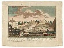 Tensions between the patricians and the guilds between 1612 and 1614 led to the Fettmilch uprising in 1614,[5] named after its ringleader, Vincenz Fettmilch. During the riot, the Judengasse was attacked and looted, and the Jews were expelled from the city. Two Jews and one assailant were killed in the pogrom.[6]