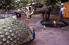 This exhibit was included in the zoo's 1973 master plan, and was originally home exclusively to African rainforest animals; however, more Central and South American species began being displayed in the Tropical Forest by the late 1990s. One gorilla named Little Joe escaped his enclosure several times in 2003. He was later separated from the gorilla family, but later returned in 2007.[8] Also in 2007, the zoo's gorilla exhibit was reopened after extensive renovations. As of 2011, a male giant anteater named Jockamo resides in the former warthog enclosure.[9] In spring 2020, a wildlife trade exhibit showcasing artifacts will be displayed in the tropical forest public areas.