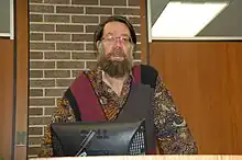 ![]() Franklin Rosemont speaking at Loyola University, Chicago, 2007 |