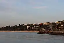 Situated on the eastern shoreline of Port Phillip, Frankston has been a popular seaside destination of Melbourne since the 1880s.[3] Frankston Beach is still one of the most frequented in Victoria,[8][9] and is recognised as one of the cleanest in Australia.[10][11] It was also home to one of the largest exhibitions of sand sculpting in the Southern Hemisphere.[12][13][14]