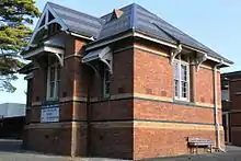 By the mid-1880s, No. 1464 Frankston School was classified as a "class 4" school (approximately 250 pupils) and had previously been expanded with an extension to the existing wooden school house in 1880.[68] Due to its growing enrolments, and following a petition by residents to the Victorian colonial Department of Education, an additional 20 x 30 feet brick school house was built in 1889.[68][101] The brick school house is now operated as an education history museum by the Frankston Historical Society.[102]