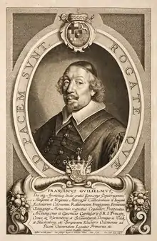 Franz Wilhelm, Count von Wartenberg (born at Munich, 1 March 1593; died at Ratisbon, 1 December 1661) was a Bavarian Catholic Bishop of Osnabrück, expelled from his see in the Thirty Years' War and later restored, and at the end of his life a Cardinal.