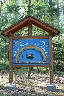 The Franziskus-Marterl is a chapel-shrine in the southeast of the unfinished Wackersdorf reprocessing plant (WAA) "Im Blaubeerwald" in Altenschwand (Bodenwöhr, Schwandorf (district), Bavaria). The WAA resistance marterl is dedicated to Francis of Assisi and is surrounded by several other protest monuments such as the Christian cross of Wackersdorf.[1] The "Franziskus-Marterl" is a stone reminder of the fight against the reprocessing plant (WAA). In 1986 the chapel was built on the site by Michael Meier, with the Wackersdorf Cross to the right.[2]