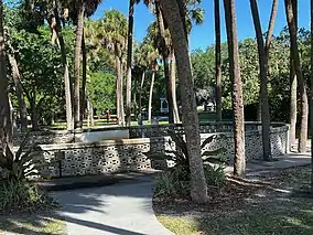 In the mid-1800s, Palma Ceia Spring was known for its healing powers, and people came to bathe in its waters. A fountain was erected on the current grounds of the park in 1906 and is supplied by the Palma Ceia Spring. What remains of the spring can be found at Fred Ball Park.[1]
