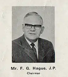 Hague was born in Dixon Street, Crossbank, Waterhead, Oldham.[3] He worked as a cotton weaver. He studied at Oldham Technical College and held the honours certificate of the City and Guilds in plain and fancy weaving, and advanced certificates in spinning. He also attended Oldham School of Commerce to study spinners' costings and W.E.A. classes in economics. He then joined the staff of Oldham Technical College as a teacher of cotton weaving. In 1939 Mr. Hague was appointed organiser and collector for the Shaw district of Oldham Weavers' Association. and joined the Ashton-under-Lyne and District Weavers' Association in 1940.[4] He was elected as its general secretary by the mid-1950s,[5] and also became prominent in the Amalgamated Weavers' Association, to which it was affiliated. He joined the Army in 1940 and on demobilisation in 1945 was appointed to the Middleton branch. He became a Blackburn magistrate in 1951. He was a governor of Blackburn Technical College, and a member since its inception of the Blackburn Executive Council for the Health Services.
