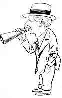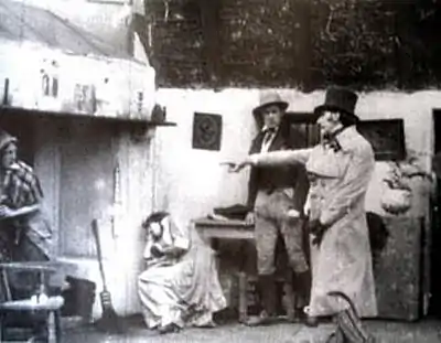 Encouraged by the public reaction, Film Company of Ireland proceeded to make a series of comedies in which O'Donovan and the others appeared, followed by a drama, The Eleventh Hour.[10] The next year Kerrigan moved to the United States and O'Donovan took on directing, first the comedy Rafferty’s Rise in which he also took the lead part of a constable.[11] Next he starred in and directed When Love Came to Gavin Burke. Irish Limelight published a detailed description of a day spent at the film shoot, including a cartoon by Frank Leah of O'Donovan directing.[12] The company's next step was to take a major leap forward in ambition: a full-length adaptation of Knocknagow, Charles Kickham's epic novel set in the time of the Irish famine and land clearances in the 19th Century, that was published in 1873. O'Donovan directed and took a supporting role. Commented the critic in the Cavan Anglo-Celt: