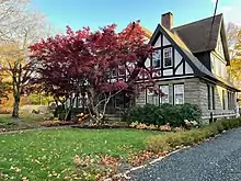Another of Savage's personal homes, which also doubled as a model home for prospective business purposes, the Atlantean, on the shore-side stretch of Bar Harbor's Atlantic Avenue, is one of the best examples of Savage's work in the Tudor style. It was built in 1903,[8] and Savage lived there with his second wife, Alice. It was later renamed the Wayside Inn, but as of 2021 it is called the Atlantean again.[7]