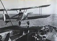On 28 June 1917, Flight Commander Rutland took off in a Sopwith Pup from a flying-off platform mounted on the roof of one of the gun turrets of the light cruiser HMS Yarmouth, the first such successful launch of an aircraft in history.[14] He did more experiments on the battlecruiser HMS Repulse. It was the first capital ship fitted with a flying-off platform when an experimental one was fitted on 'B' turret in the autumn of 1917. Then Squadron Leader Frederick Rutland took off in a Sopwith Pup on 1 October 1917. Another platform was built on 'Y' turret and Rutland successfully took off from it on 8 October 1917.[15]