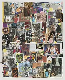 In 2003, Weston showed collages in a group exhibition called "Release" that was organized by Visual AIDS and appeared in the Museum of Contemporary African Diasporan Arts. Sally Block and Laurie Cumbo were its curators.[9] In 2011, he was given a retrospective exhibition called "For Colored Boys Who Have Considered Suicide When All You Ever Needed Was the Blues". It was held in the Rankin Art Gallery of Ferris State University.[14] Later that year, his work appeared in a group show called "Stay, Stay, Stay" sponsored by Visual AIDS at La MaMa La Galleria and three years later he showed with another group in Davidson College's Van Every Gallery.[15][16] Other group shows in this period included "Out of Bounds" at Leftfield Bar on the Lower East Side of Manhattan (2015), "Art AIDS America" at the University at Buffalo and three other sites (2016), and "Persons of Interest" at a Manhattan bookstore called Bureau of General Services—Queer Division.[6][17][18][note 2] He showed collages in four group shows during 2017 ("Intersectional Identities" at Clifford Chance in New York, "Found: Queer Archaeology; Queer Abstraction" at the Leslie-Lohman Museum of Art in New York, and "AIDS at Home" at the Museum of the City of New York, "Cut Here: Matt Keegan, Siobhan Liddell, Frederick Weston" at the Gordon Robichaux Gallery).[6][19][20] The following year, he appeared frequently in group shows and in panel discussions in which he often showed slides of his work. These included a panel called "Fag, Stag, or Drag?" with John Neff at Artists Space in New York, a panel of poetry readings at Gordon Robichaux, a group show called "Proposals on Queer Play and the Ways Forward" at University of Pennsylvania's Institute of Contemporary Art, a panel on "Visual Arts and the AIDS Epidemic" at the Whitney Museum of American Art, a group called "This Must Be the Place" at the 44 Walker Street Gallery in New York, a group called "A Page from My Intimate Journal" at Gordon Robichaux, a group called "Queer Artist Fellowship: Alternate Routes" at the Leslie-Lohman Museum, and a two-person show called "Inside, Out Here" at La MaMa La Galleria.[2][21][22][23][24][25][26][27]