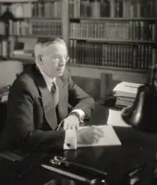 Fredrick Arthur Willius was born in St. Paul, Minnesota, to Gustav Otto Conrad Willius (November 25, 1831 – September 26, 1924) and his wife Emma (née Klausmeyer, August 30, 1855 – April 26, 1933). Gustav Willius and his brother, Ferdinand, were German immigrants who settled in St. Paul and established themselves in banking and finance. The Willius name (English: /ˈwɪliəs/; German: [ˈvɪlɪʊs]) is a Latinized form of Wille, and the family, which is originally native to Kassel, has borne it since at least the 18th century.[2][3] Through his father's family, Willius was a third cousin of the scientist Albert Wigand, the general Adolf von Deines, and the physician Georg Ledderhose. Willius himself never met any of these cousins, but he and Ledderhose corresponded prior to the latter's death, and his uncle Ferdinand actually met General von Deines in Europe, in large part thanks to his position as Prussian Consul in Saint Paul.[4] Emma Klausmeyer's father was Wilhelm Klausmeyer, himself an immigrant from Bavaria, who was a choir director, a pianist, and a member of the board of directors of the Cincinnati Conservatory of Music.[5] Fredrick's maternal uncle Alfred Klausmeyer was the founder of the Anchor Buggy company, an early American manufacturer of automobiles.[6] Fredrick's early education took place in the public schools of Dayton's Bluff, where he was born and raised. In 1906, shortly after beginning his third year at Mechanic Arts High School, Willius was struck with an attack of acute appendicitis, but when the first operation proved unsuccessful and complications set in, he was operated on by Dr. Arnold Schwyzer on the family's kitchen table, and after a period of convalescence, he was returned to health.[7] Willius credited this experience with inspiring him to pursue medicine, which went firmly against his father's wishes that he study architecture. Despite his father's reluctance, Fredrick graduated from high school with honors, at which point he enrolled in the University of Minnesota, with the intention to study medicine. He graduated from the university in 1912 as a Bachelor of Science, and in 1914 as a Doctor of Medicine. He was a member of Phi Rho Sigma Medical Society, as well as the Sigma Xi Scientific Research Honor Society.[7] During his third year at the University of Minnesota, he participated in research with James F. Corbett on the causes and pathology of diabetes mellitus, for which he was awarded the Rollin E. Cutts Medal for experimental surgery.[8] After graduation, Willius entered into a twelve-month internship at the University Hospital, and in 1915, he began his three-year fellowship in surgery at the Mayo Clinic in Rochester, Minnesota.[8]