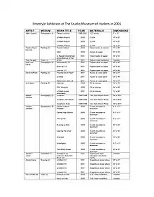- ↑ Cotter, Holland (2001-05-11). "ART REVIEW; A Full Studio Museum Show Starts With 28 Young Artists and a Shoehorn". The New York Times. Retrieved May 11, 2001.