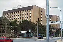 The main facility of Fremantle hospital is a historic site and looks out over the nearby fishing boat harbour, the Port of Fremantle and the Indian Ocean.[1]