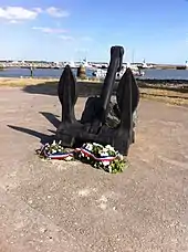 While work was still being completed, the ship's commander, Capitaine de vaisseau (CV—Ship-of-the-line captain) Pierre-Jean Ronarc'h received orders on 11 June to depart for Casablanca in French Morocco as soon as was practical. He estimated that 19 June would be the best opportunity based on the tides, and early that morning Jean Bart was towed out of the fitting-out dock by three tugboats at 03:30 and into a channel that had been quickly but not sufficiently dredged to allow her escape.[lower-alpha 2] The ship accidentally grounded in the darkness, bending one of her screw blades, but the tugs pulled her free and at 04:45, the crew got Jean Bart's engines started. Shortly thereafter, three German Heinkel 111 bombers arrived at a height of 1,000 m (3,300 ft) to attack the ship. One of the aircraft scored a hit with a 100 kg (220 lb) bomb that struck between the main battery turrets but did insignificant damage. Jean Bart increased speed to 12 knots (22 km/h; 14 mph) and at 06:30, rendezvoused with the destroyers Le Hardi and Mameluk, which were to escort her to Casablanca. The British destroyer HMS Vanquisher and two tugs met the ship at sea, offering to tow Jean Bart to Britain, but Ronarc'h declined the offer. Jean Bart took on fuel oil at sea from a pair of tankers and at 18:00, she left the area with the two destroyers. While cruising off Lorient the next day, the destroyer Épée relieved Le Hardi and the three ships continued on at a speed of 24 knots (44 km/h; 28 mph). They arrived in Casablanca at 17:00 on 22 June.[8][9]
