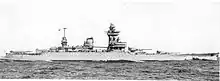 - ↑ Whitley's Battleships of World War II provides the 1,381 figure, while Conway's All the World's Fighting Ships states the crew numbered 1,431.[7][8] Garzke & Dulin confirm the 1,381 number, and further clarify that the crew was composed of 56 officers, 1,319 enlisted men, and six civilian crew members.[9]