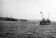 Châteaurenault was recommissioned on 15 January 1910, and just fifteen days later, she accidentally ran aground off Cape Spartel, Morocco in poor weather. The protected cruiser Du Chayla and two tugboats refloated the ship and towed her to Gibraltar, and the armored cruiser Victor Hugo then towed her from Gibraltar to Toulon.[4] By 1911, Châteaurenault had been assigned to the Reserve Division of the Mediterranean Squadron, based in Toulon. The unit initially also included the armored cruisers Victor Hugo and Jules Michelet and the protected cruiser Jurien de la Gravière, and later that year, it was strengthened with the addition of the armored cruiser Jules Ferry.[21] Châteaurenault thereafter became the flagship of the Training Division of the Atlantic, where she housed a school for boatswains. The ship served in this capacity through 1913.[4]