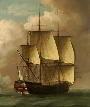 In 1758, Oiseau made a journey from Toulon to Cartagena, and back, under Sagui Des Tourès.[1] Later that year,[2] Lieutenant Moriès-Castellet took command of Oiseau. In September 1759, she captured the British merchantman Prince of Wales, and brought her back to Toulon.[1] In 1760, Moriès-Castellet transferred to Chimère, but he returned as captain of Oiseau from 1761 to 1762.[2]