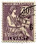 Beginning in 1902, stamps of the Blanc, Mouchon and Merson series were issued with the inscription "LEVANT", both as centime/franc, and with higher values surcharged in piasters. In 1905, 15c stamps in Beirut were surcharged with "1 Piastre / Beyrouth".