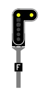Slow 30 reminder signals are used just before one or more points to be passed at a maximum speed of 30 km/h. Slow 30 reminder can be combined with the Distant or Flashing yellow signals.