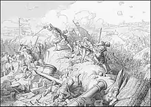 The Thérèse arrived at Candia on 19 June 1669 in company with 17 transport ships and 6,000 French soldiers.[2] The French force was there to support the Venetian forces during the Siege of Candia. Another 24 French warships arrived on 3 July. Six days after their arrival the leader of the French corps, François de Vendôme, Duc de Beaufort, was killed in battle and Philippe de Montaut-Bénac took over. On 10 July a council of all the leaders of the allied armies took place and the decision was made to use the fleet to attack the Turks northwest of the city, as this part of the city was totally impoverished. After the bombardment the allied forces aimed to strike and repel the Turks. 24 July was selected as the day of the operation. As planned that day, the whole Navy sailed west of the city to the mouth of the river Giofyros. The fleet comprised 58 warships mounting 1100 cannon. For three hours the fleet continuously bombarded the Turks, when suddenly La Thérèse's powder magazine caught fire, resulting in the destruction of the ship. Only seven of her crew survived out of 350. Immediately after this incident there was great confusion in the French naval force and the fleet's commander, Vincenzo Rospigliosi, ordered the bombardment to be abandoned, and sailed the fleet to the island of Dia.