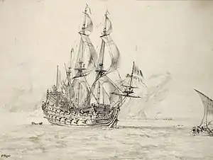 The Thérèse was a 58-gun ship of the line of the French Navy. She was designed and built by François Pomet in Toulon Dockyard between 1662 and 1665, and was classed as a vaisseau de troisième rang (ship of the third rank). She was part of a French relief effort to Candia during a siege by the Ottomans and was sunk on 24 July 1669 after an explosion in her powder magazine. At the time she was a flagship of the expedition.[1]