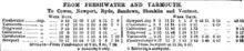 In the summer of 1939 there were thirteen trains in each direction with extra trains on Saturdays, and eight each way on Sundays. The journey time was about 37 minutes.[6]
