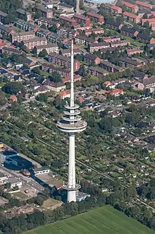 Friedrich Clemens Gerke Tower is a 230 metre tall telecommunication tower of reinforced concrete in Cuxhaven in Germany. Friedrich Clemens Gerke Tower, which is named after Friedrich Clemens Gerke, was completed in 1991 and is not accessible for tourists. In spite of its size, it is only used as receiving point for cable TV, as a radio relay station and as a mobile phone transmitter, but not for broadcasting. The tower was designed by architects Gerhard Kreisel, Dipl. Ing. and Günter H. Müller Dipl. Ing., Kiel´.